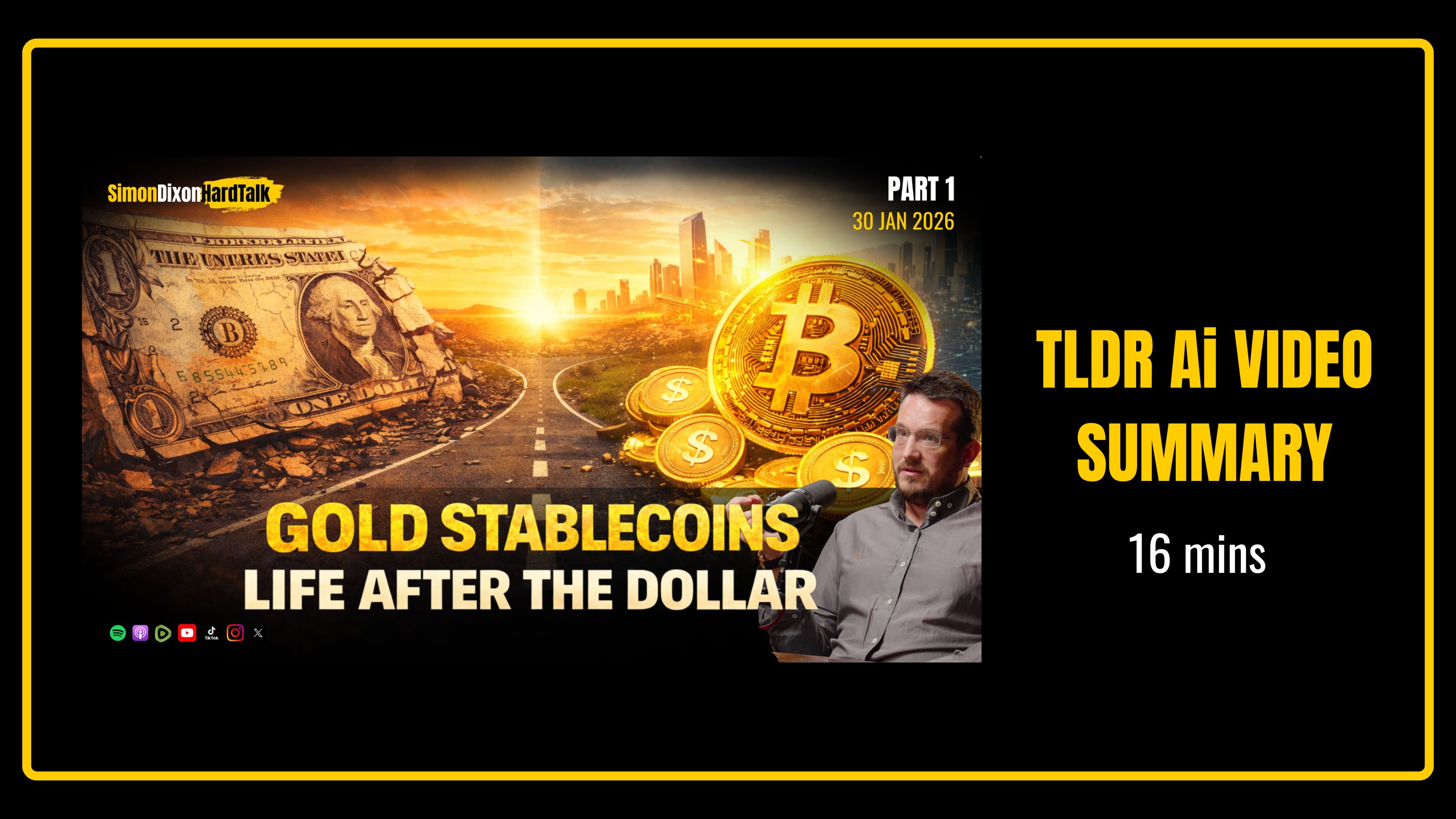 This article distills the "Part 1" segment of the SimonDixonHardTalk livestream, which aired on January 30, 2026, across YouTube, X, and Rumble. The full 3-hour and 14-minute broadcast, titled "Gold Just Broke the Dollar — The New World Order Has Begun," represents a critical update for anyone seeking to exit the legacy system. This specific deep dive focuses on the 1 hour and 14 minutes dedicated to Bitcoin, the Technical Industrial Complex, and the tactical maneuvers taking place in the dollar’s aftermath.