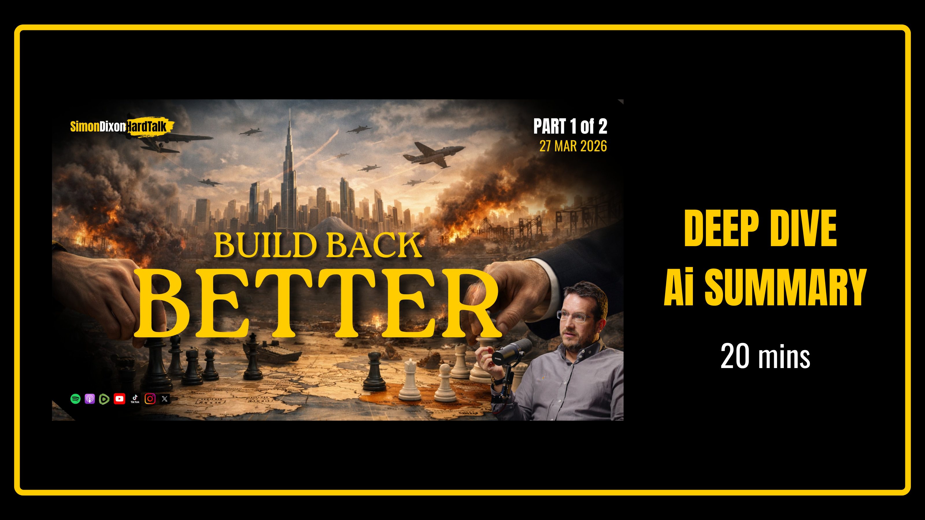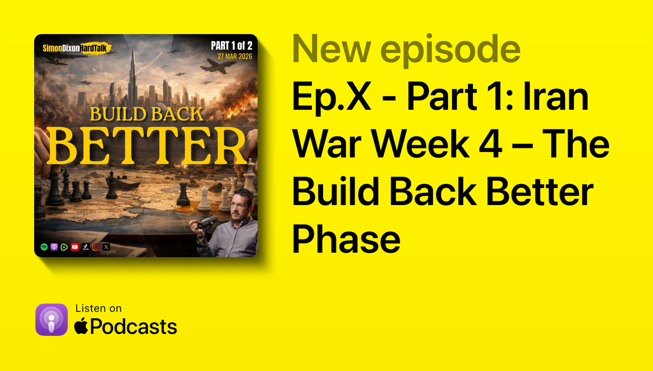 We are officially entering week four of the conflict between Iran, the US, and Israel, and the mask is beginning to slip. This analysis is based on the recent livestream titled 🇮🇷🇺🇸🇮🇱 Iran War Week 4: Build Back Better | The Next Phase of the Global Reset | SimonDixonHardTalk LIVE, which aired on March 27, 2026. The full broadcast ran for 3 hours and 46 minutes, but today we are performing a deep dive into Part 1, the first 1 hour and 37 minutes of the show. This segment represents the core of the "Hard Talk" analytical framework—looking past the kinetic explosions to find the money-flow mechanics.