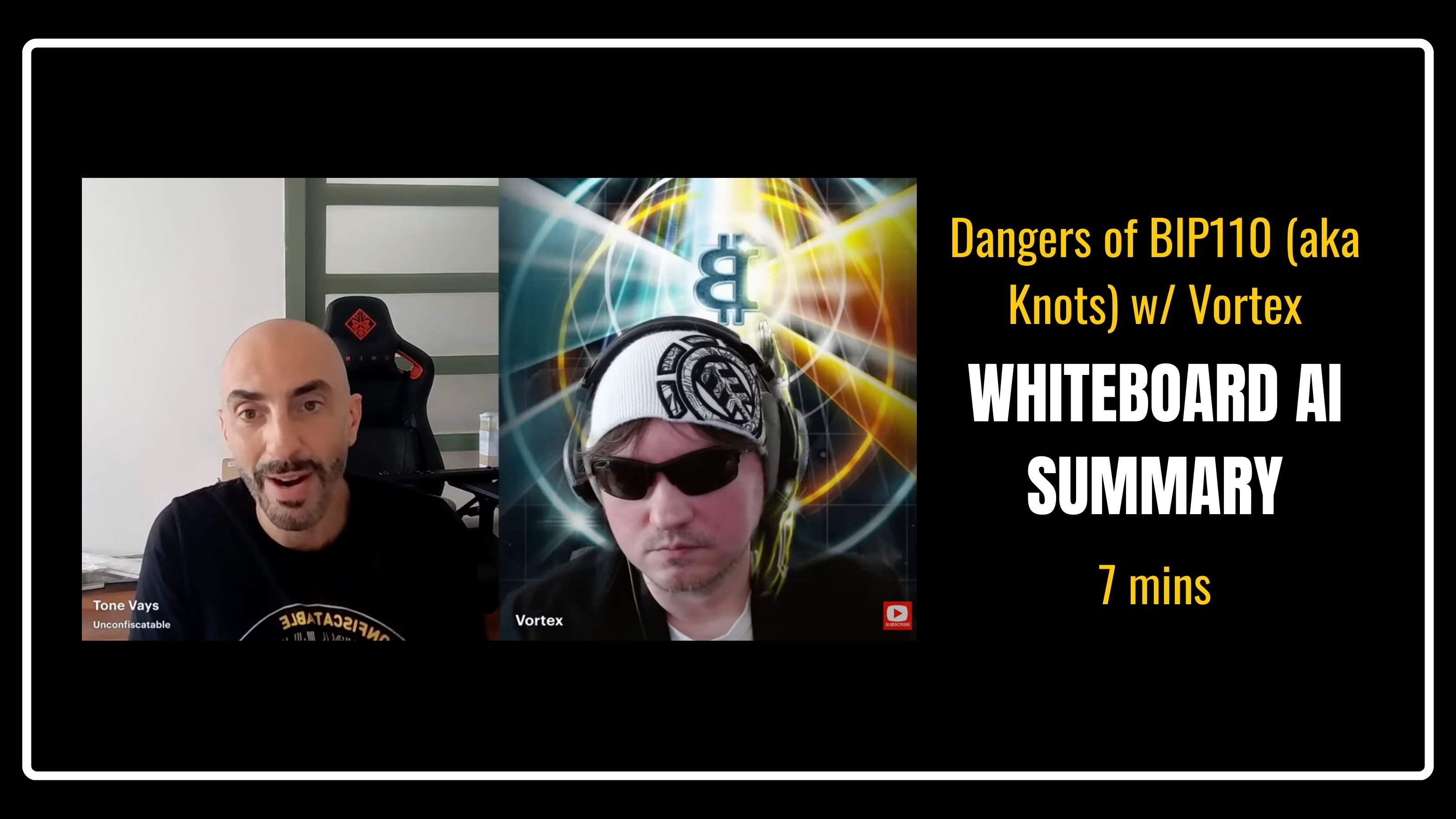 Ai generated whiteboard explainer video of a video that Tone Vays and Vortex did. That video was called "Dangers of BIP110 (aka Knots) w/ Vortex". Duration of the original video was 1 hour 53 mins.