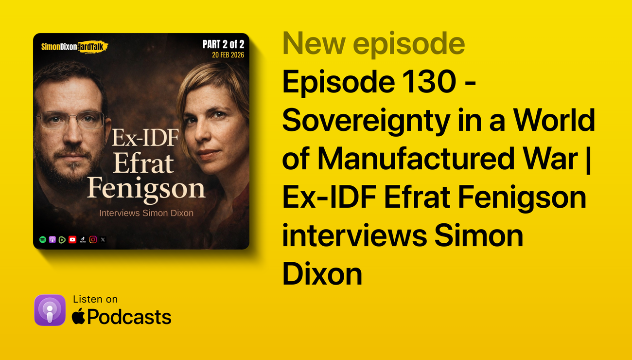 On February 20th, 2026, we broadcasted a marathon SimonDixonHardTalk LIVE session titled "The Dollar’s Last War: The End of Bretton Woods." That broadcast ran for a staggering 3 hours and 16 minutes, dissecting the structural decay of the global financial order. Today, we are distilling the core of Part 2, which began at the 2-hour and 15-minute mark: “Sovereignty in a World of Manufactured War,” where Ex-IDF Efrat Fenigson puts me in the hot seat to follow the money to its darkest corners.