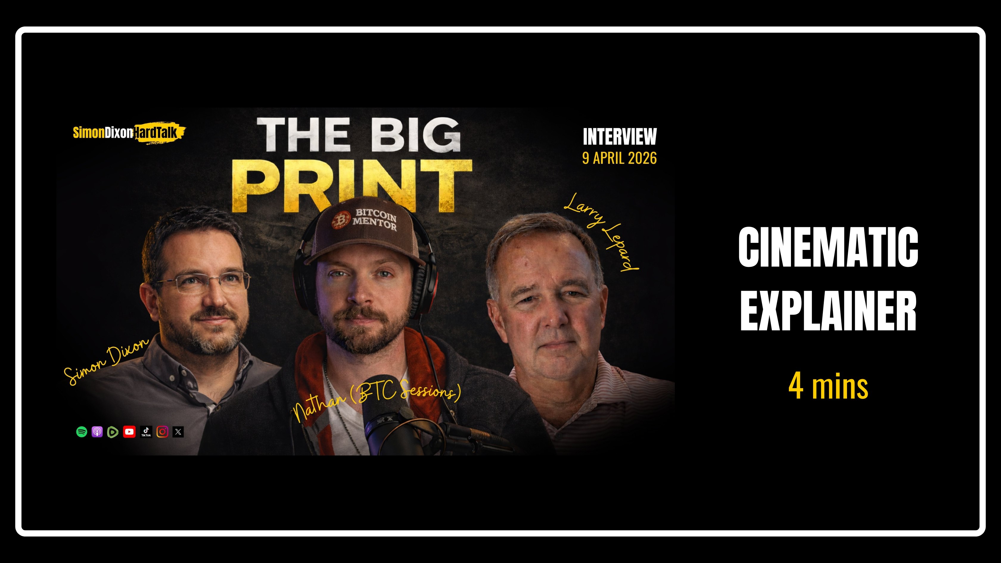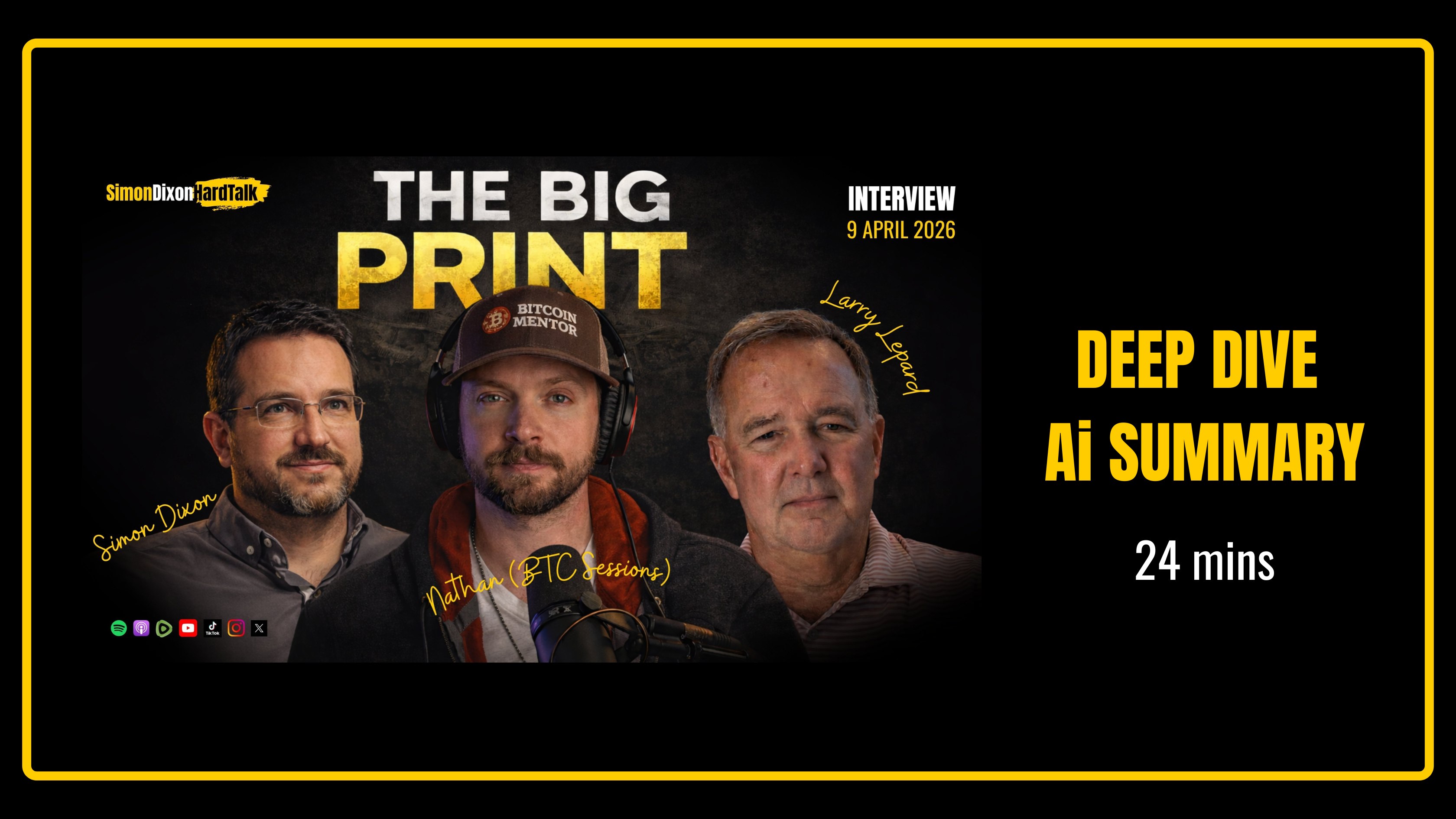 Welcome to an essential exploration of the strategic forces currently reshaping our world. On 9 April 2026, I sat down for a definitive, 1-hour and 36-minute conversation on Nathan’s BTC Sessions with Lawrence Lepard, the author of the Big Print. We are currently navigating what I call the "unmasking of empire." The narratives that have propped up the old-guard systems for over half a century are being systematically dismantled. This transition is not a random series of crises but a calculated global reset driven by institutional capture and the mathematical inevitability of monetary collapse. To thrive in this era, you must move beyond the "team sports" of modern politics and understand the deeper geopolitical and financial architects behind the curtain. The world feels like it is in a state of absolute chaos, and traditional political narratives no longer make sense to the rational observer. This is because we are witnessing a transition that is more about mathematical necessity and the "Big Print" than any ideological preference of the masses.